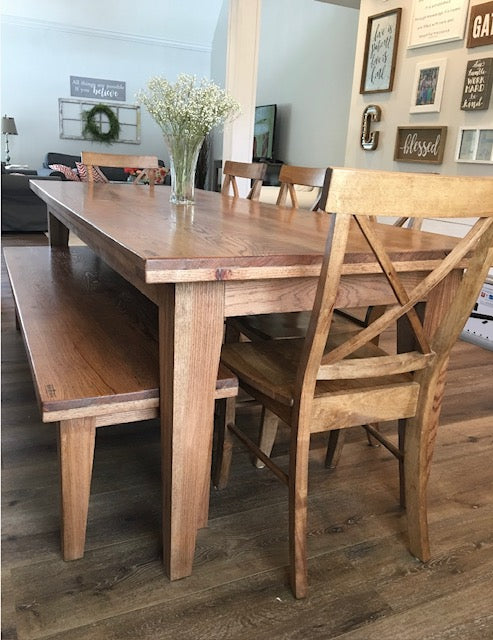 Please keep in mind: Our furniture is handcrafted from solid wood, and that’s not for everyone. Be sure to check out “Cosmetic Standards” & FAQ’s table care to understand a little more about Red Leaf Tables.