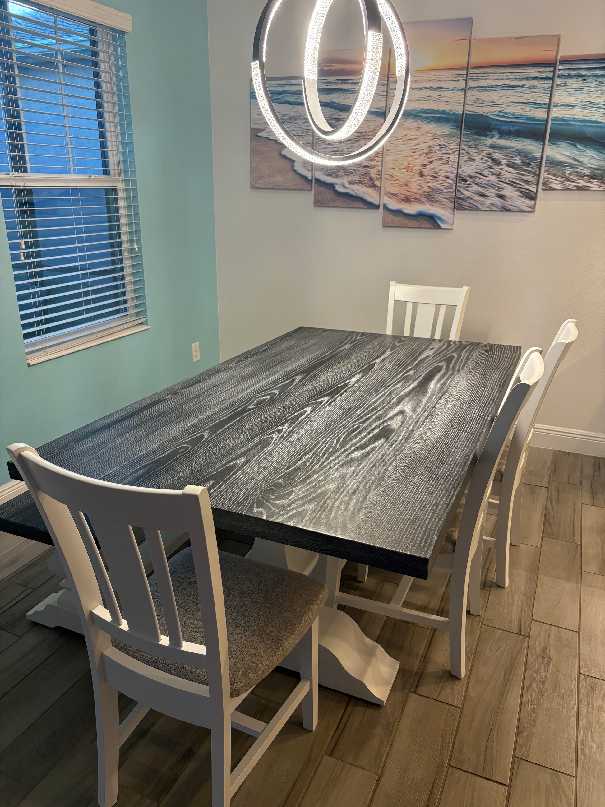 The Abby Trestle Table is a beautifully shaped centerpiece that brings timeless elegance to any dining space. As one of our customer favorites, its graceful trestle base offers both visual appeal and sturdy support. Whether finished in a classic painted look or paired with a matching wood tabletop, the Abby Trestle Table delivers a seamless, flowing design that complements a wide variety of interior styles.